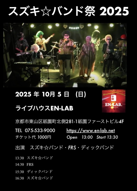 スズキ☆バンド祭り2024 が決定しました。5月12日(日) 京都MOJOでお世話になります。